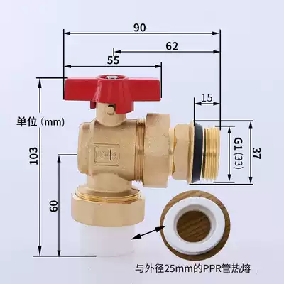 Floor heating water separator ball valve full copper angle PPR25 ball valve 1 inch inner and outer wire water separator valve can be equipped with PBPERT