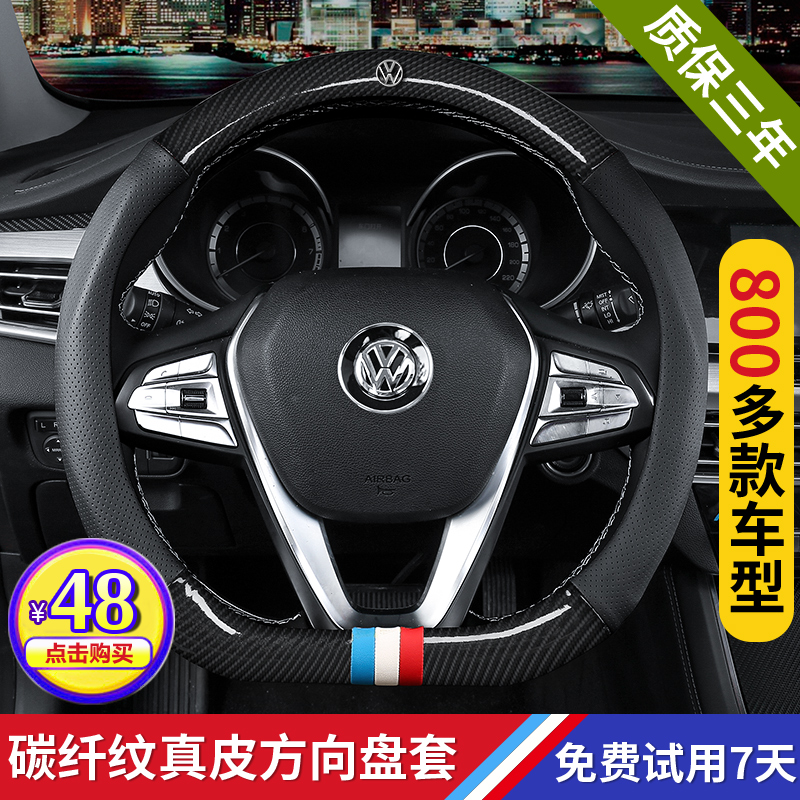 Car steering wheel cover genuine leather carbon fiber to cover all season, universal breathable and anti-sweat anti-slip sporting cow leather to sleeve-Taobao
