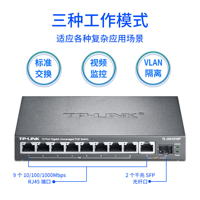 TP-LINK 4-mouth 5-mouth 8-mouth 9-mouth 16-mouth full 24 one thousand trillion-one thousand trillion-net PoE switch 1 independent one thousand trillion SFP port TL-SG1210P new old stochastic hair
