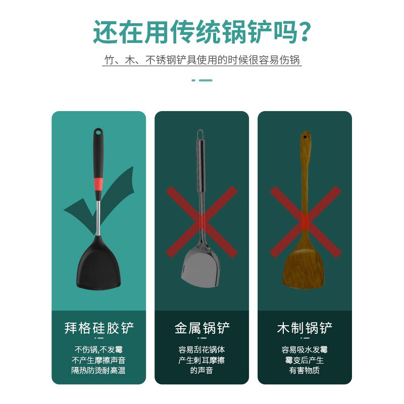 Baig Silicone Shovel not stained with special high temperature resistant stainless steel protective pan Saute Spoon Saute Saute sautzier Kitchen Cookware set