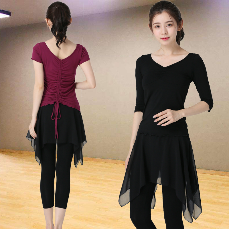 Burgundy short sleeves Black cropped pants Burgundy short sleeves Black trousers burgundy mid-sleeves Black trousers Burgundy long sleeves Black trousers Black short sleeves Black cropped pants Black short sleeves Black long