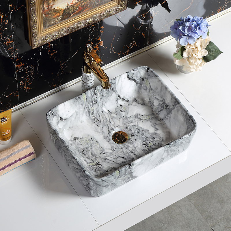 Square table basin oval ceramic household washbasin marble pattern art basin washbasin European style washbasin