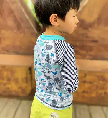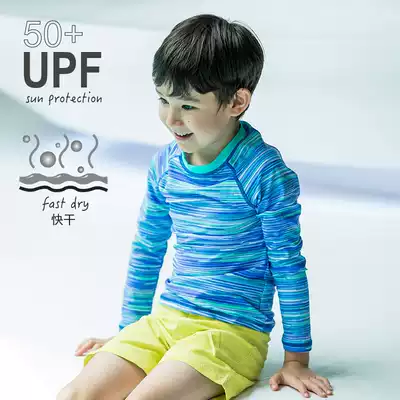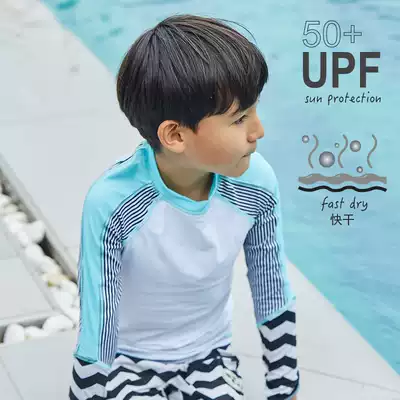 UzMz Children's swimsuit Boys sunscreen swimsuit Long-sleeved two-piece swimming costume Striped swimsuit Surf suit Boys summer