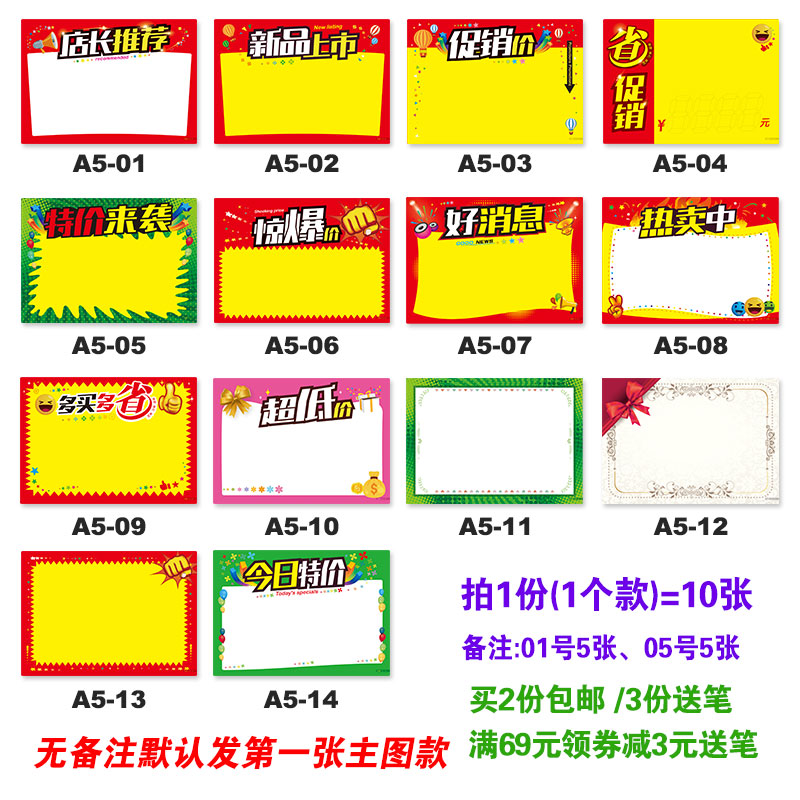 A501 store manager's recommendation - 10 sheets of A502 new products - 10 sheets of A503 promotion price - 10 sheets of A504 provincial promotion - 10 sheets of A505 special offer - 10 sheets of A5