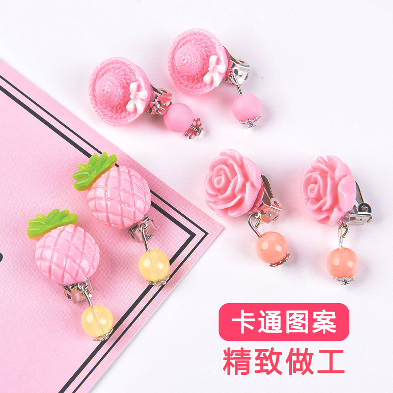 Children's crown earrings Children's candy earrings Children's flower earrings Children's hat earrings Baby earrings A box of baby diamond earrings A box of baby earrings
