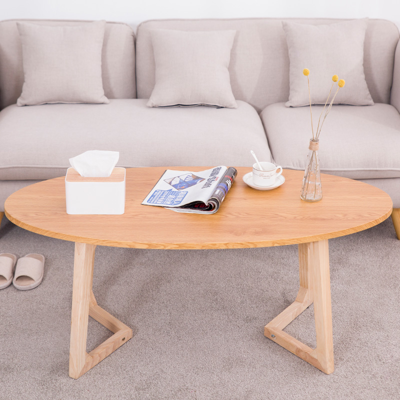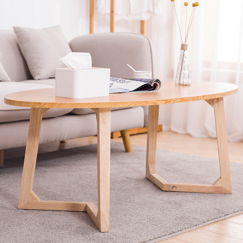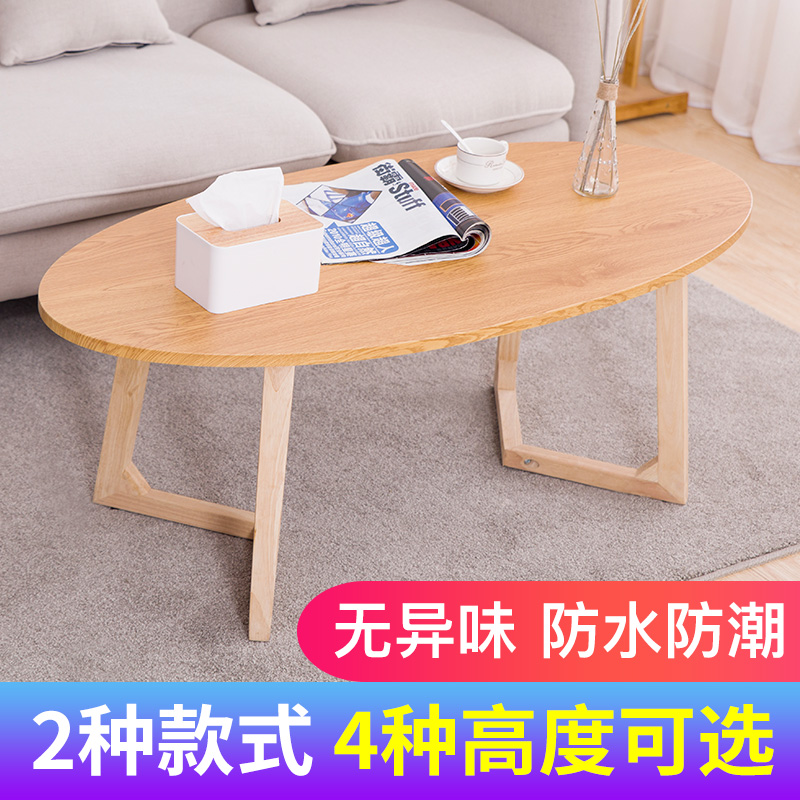 Nordic solid wood oval coffee table dining table dual-purpose living room 60cm high coffee table simple small apartment log color tea table