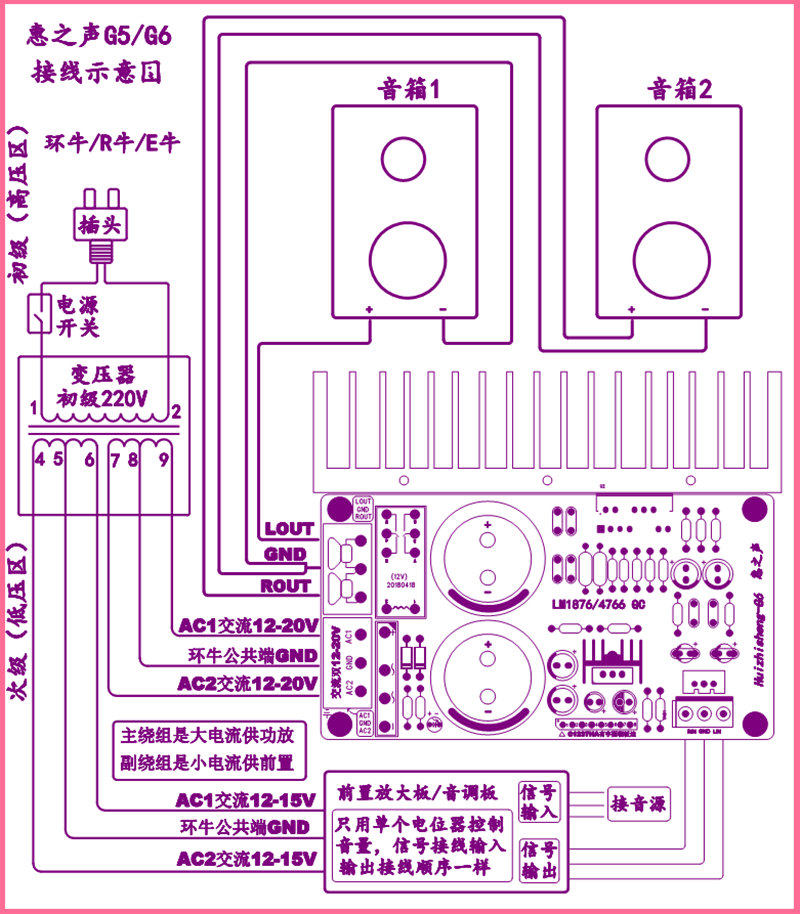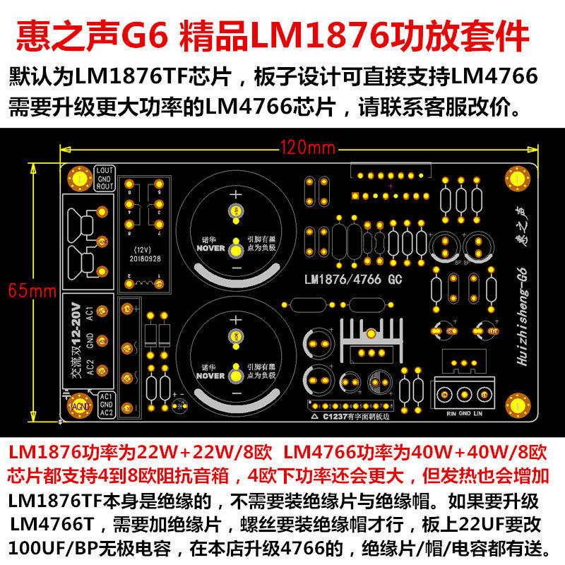 Huisheng G6 Boutique LM1876 Amplifier Board Kit Super LM1875 LM4766 Two-Channel HIFI Amplifier Board