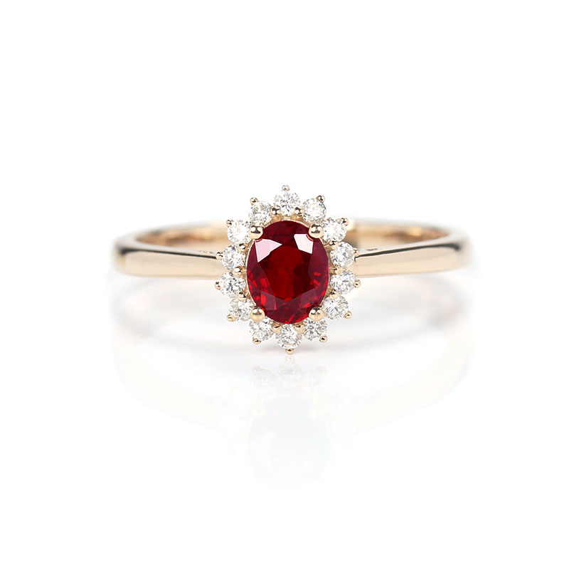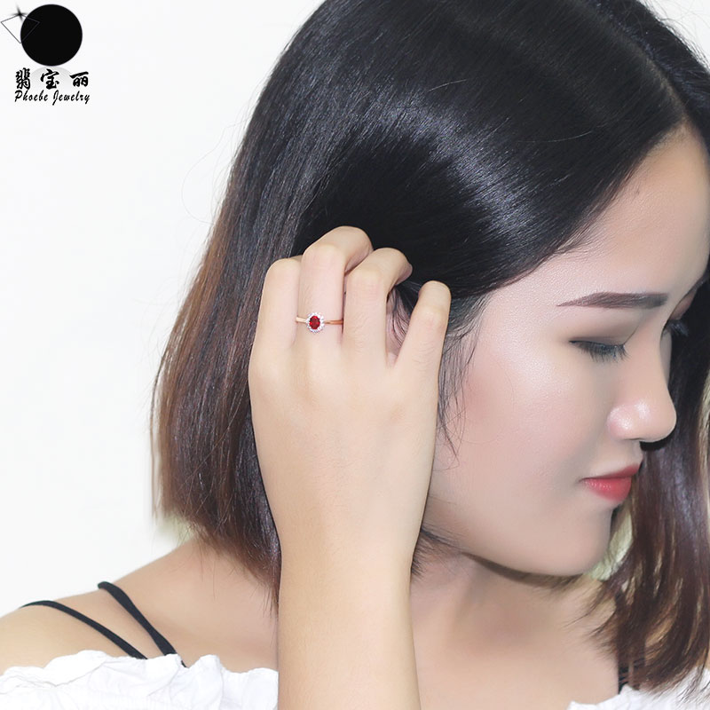 Thick 18K rose gold natural pigeon blood ruby Diana ring 50 points 1 carat diamond color gold female