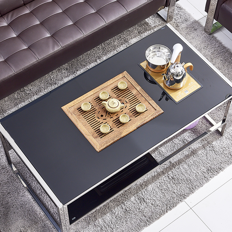 Simply modern stainless steel kung fu tea table Temporary glass tea table Tea ceremony Automatic tea table office tea table office tea table