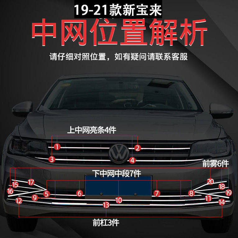 21 Volkswagen legendary Bao Li Ling Mesh Modified Accessories appear front face decoration bar auto supplies bright strip