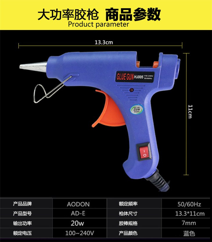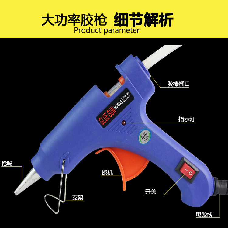 Factory direct hot melt glue gun 20W glue gun with switch hot melt glue gun blue with indicator light mini glue gun