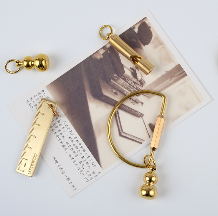 Retro brass whistle handmade pure brass whistle survival whistle keychain pendant outdoor supplies EDC tools