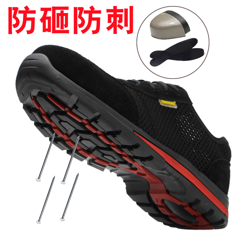 Labor insurance shoes men's summer breathable deodorant lightweight steel toe cap anti-smashing and stab-proof casual old insurance work shoes safety shoes women
