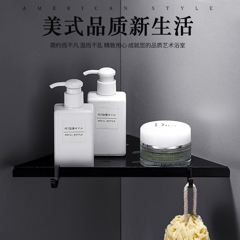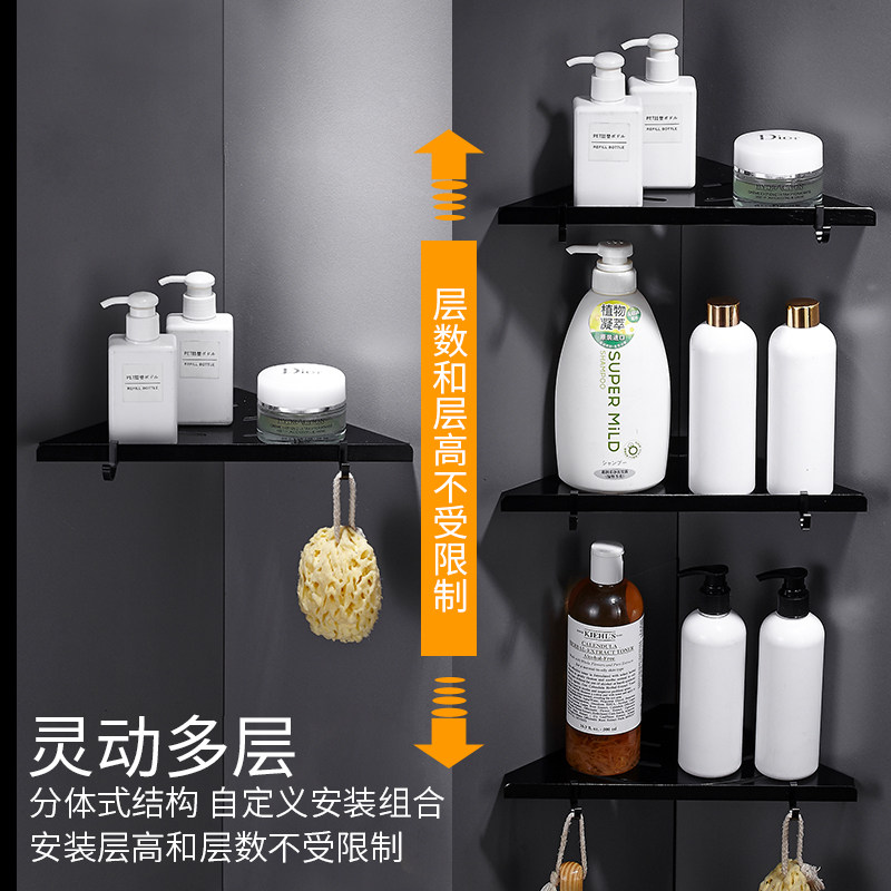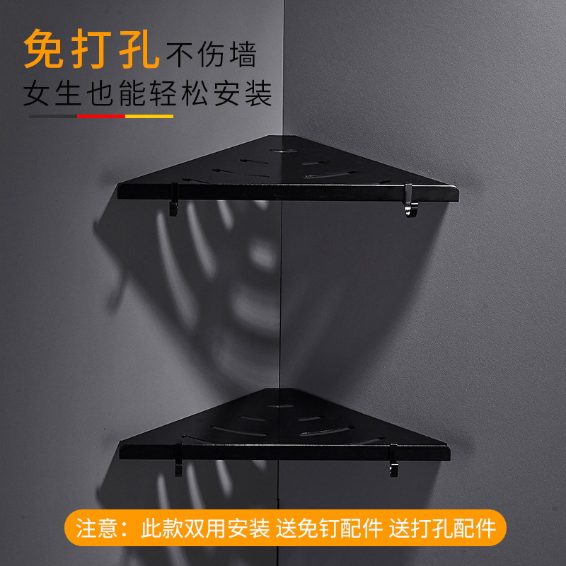Hole-free space aluminum double-layer tripod bathroom bathroom hardware pendant corner rack single-layer three-layer black