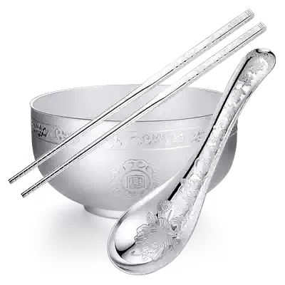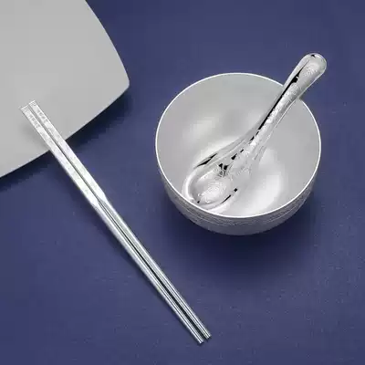 Suzhou Yinlou silver bowl, chopsticks and spoons set, foot silver 999 silver tableware, rich and safe birthday gift, boutique silver bowl