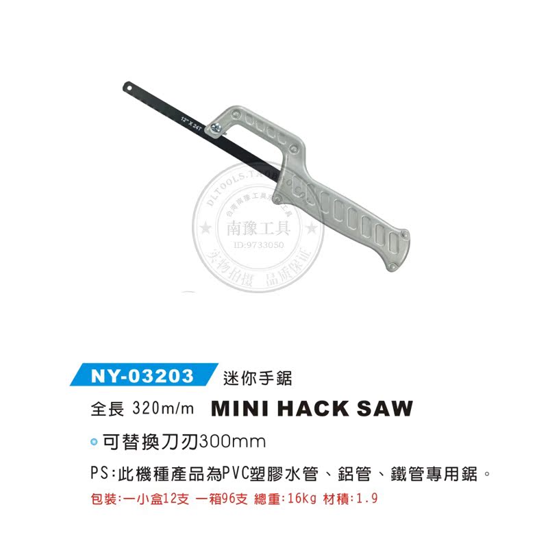 Mini hand saw NY-03203 square tube saw frame 12 inches (aluminum handle)saw blade 0 6*12mm small hacksaw-180mm long