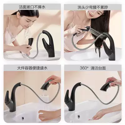 Jiumu bathroom washbasin basin Pull-out faucet Hot and cold washbasin basin Household powder room bubble faucet