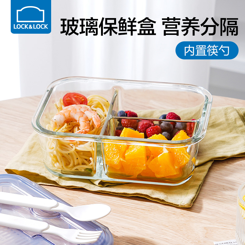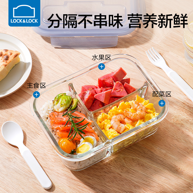 Locker glass fresh box microwave oven with meal separation lunch box to work-class heat-resistant glass bowl