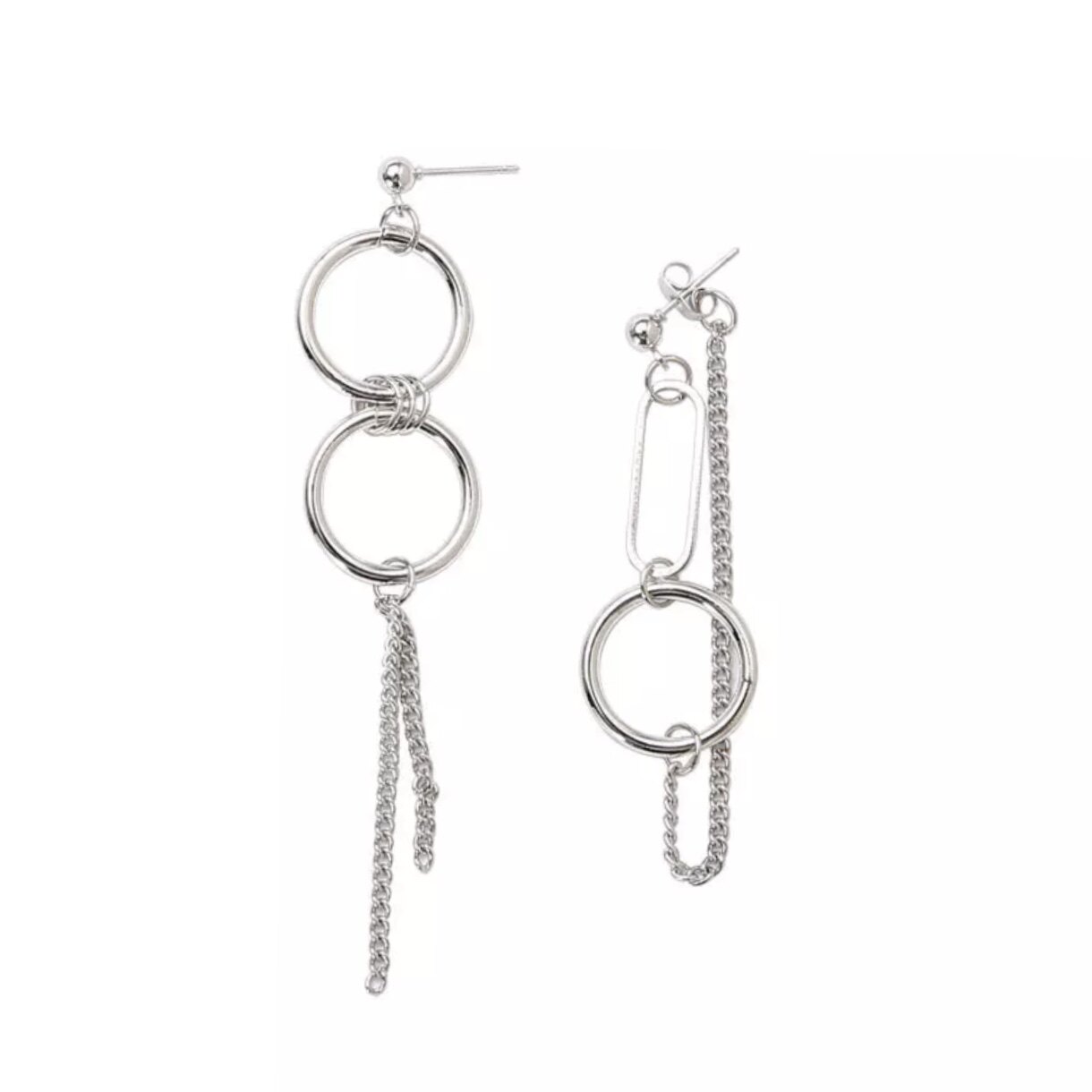 European and American original original Cebu Wind Brief Chain Asymmetrical Earrings Street Retro Wind and Identical Ear Spikes