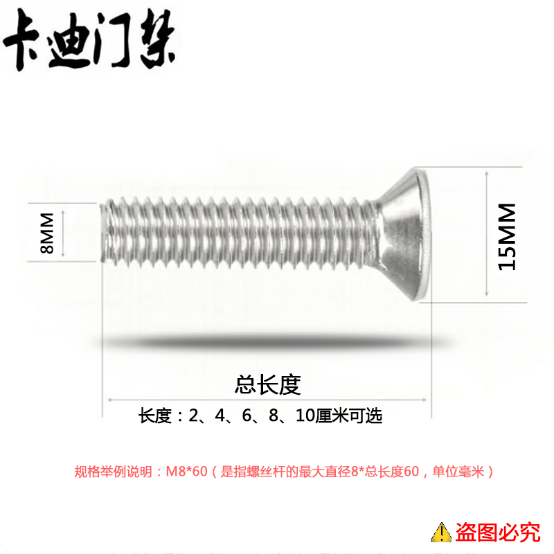 Access control Magnetic lock iron sheet lengthened fixing screw m8 * 50 70 80100m m 80100m m handle to knock screw