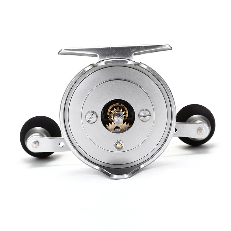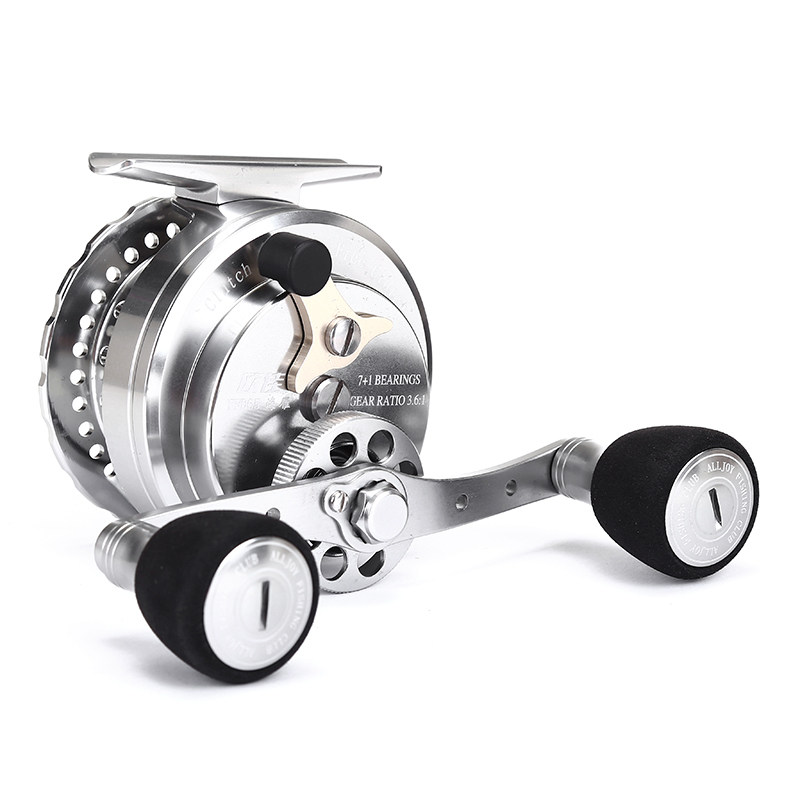 The direction of the handle of the fishing wheel: