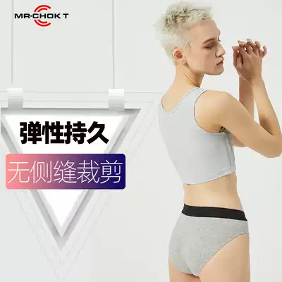 Women's les handsome t neutral MRCHOKT cotton wide-brimmed panties briefs Large size solid color mid-waist sports safety pants
