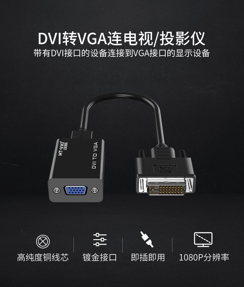 MT-D01 DVI to VGA HD Converter VGA Needle DVI Hole Converter Cable 1080P