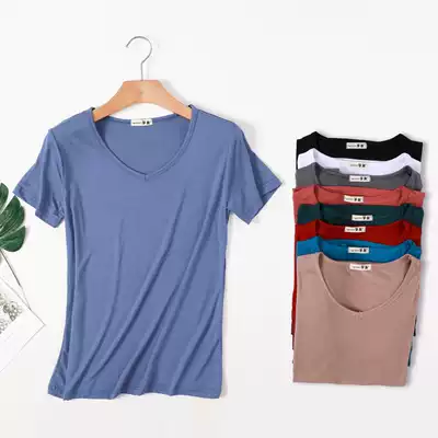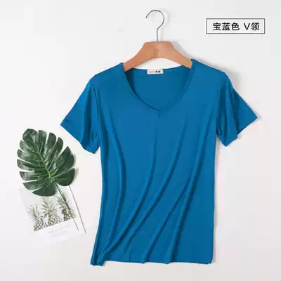 2019 summer new Korean modal cotton white T-shirt women's large size short-sleeved half-sleeved loose solid color V-neck top