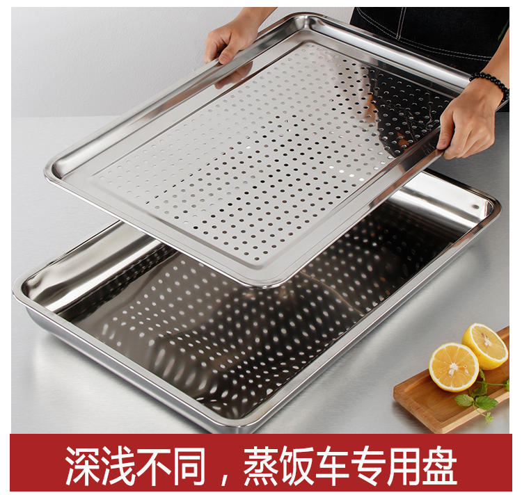 304 stainless steel steaming dinner plate rectangular detrice plate special leaking tray Commercial Steamed Rice Cart Cabinet Plate Special 60x40