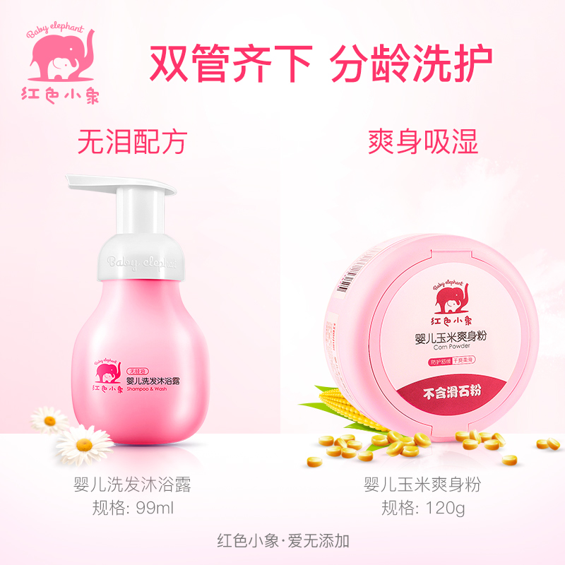 Red little elephant baby shampoo shower gel bath lotion two-in-one newborn child swarm powder face cream washout suit