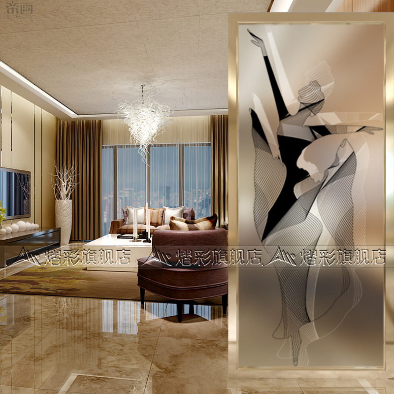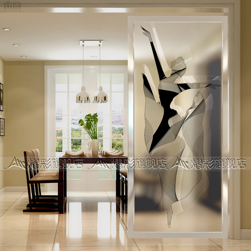 Minimalist Art Glass Partition Screen Xuanguan China-Europe Style Living Room Steel Frosted Decoration Background Wall Abstract Dancer