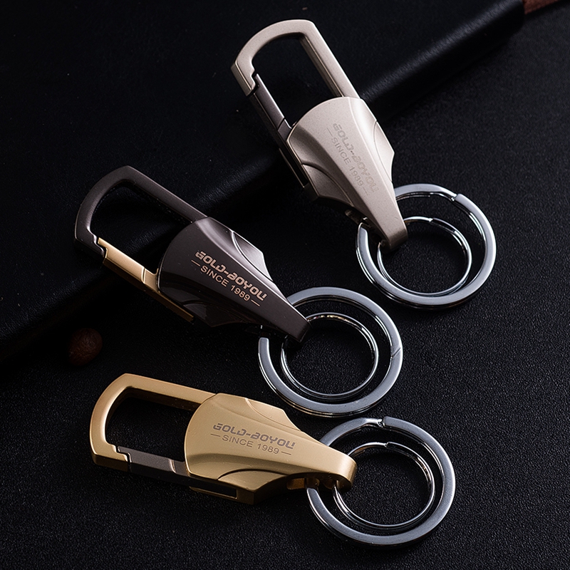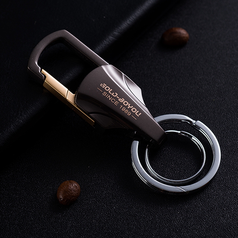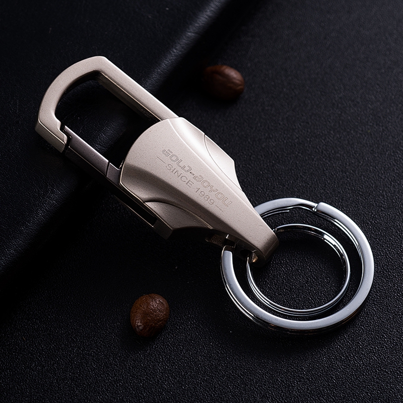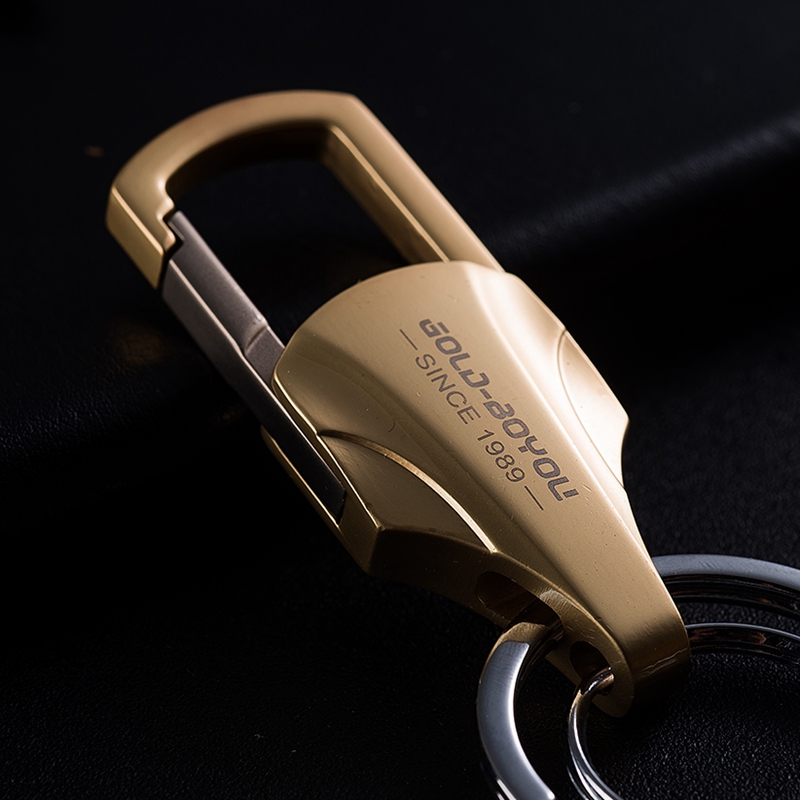 Golden Boyfriends Men's Waist Hanging Key Button Creative Car Key Chain Upmarket Double Ring Lock Spoon Alloy Pendant