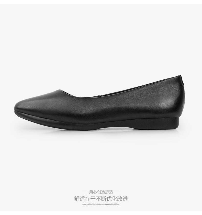 Leather black work shoes women's comfortable soft bottom non-slip flat pointed toe work shoes professional shoes stewardess dining shoes women
