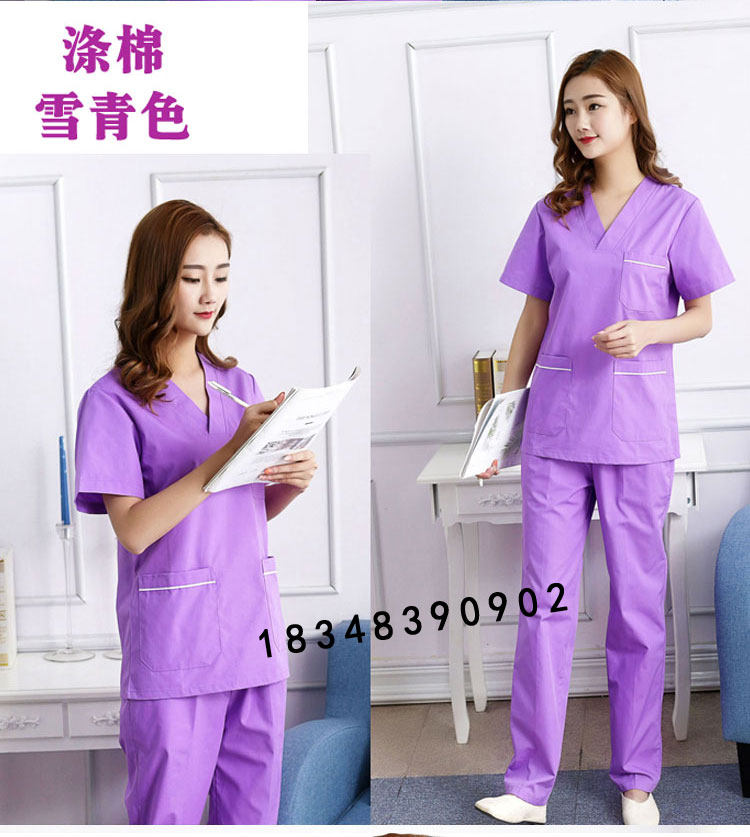 Female hide green V necklace short sleeve suit T C blend female snow green V collar side short sleeve suit T C blend female sky blue V necklace with short sleeve suit pure cotton female hide green V collar plus side long sleeve suit T C mix