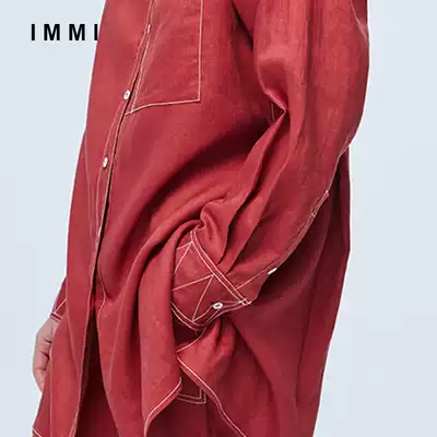 (Designer brand IMMI)Loose linen bright line solid color long sleeve shirt 171ST027X