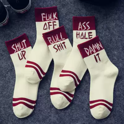 5 pairs of socks for men and women in the tube ins tide socks cotton Korean version of college style autumn Japanese Street European and American hip hop stockings
