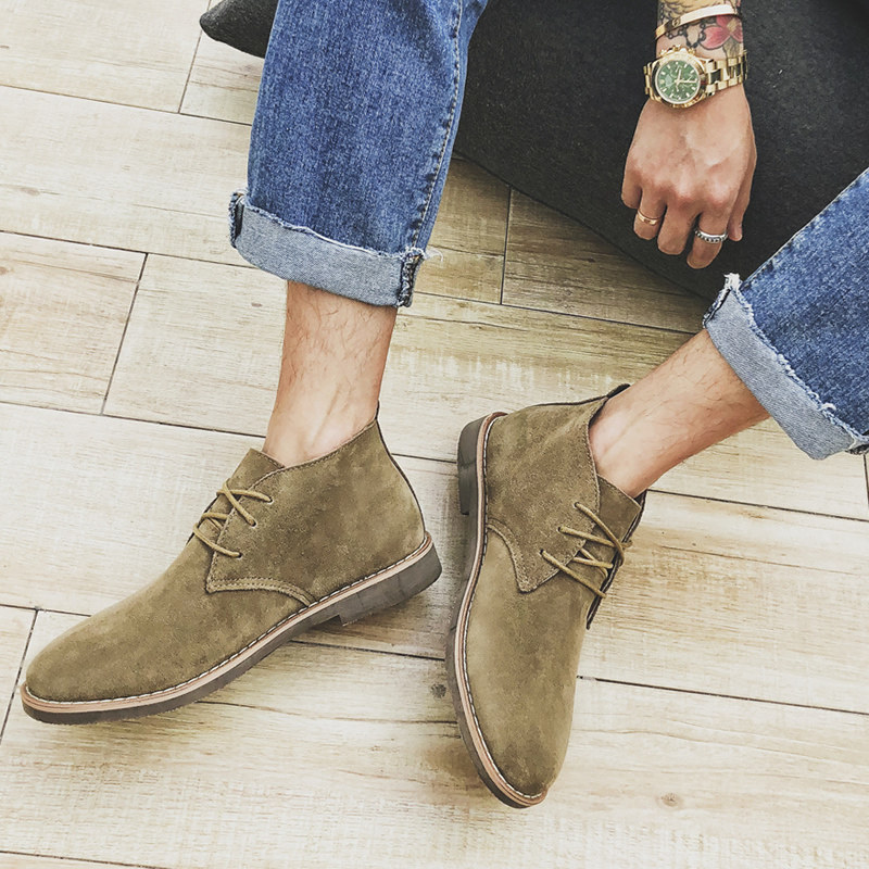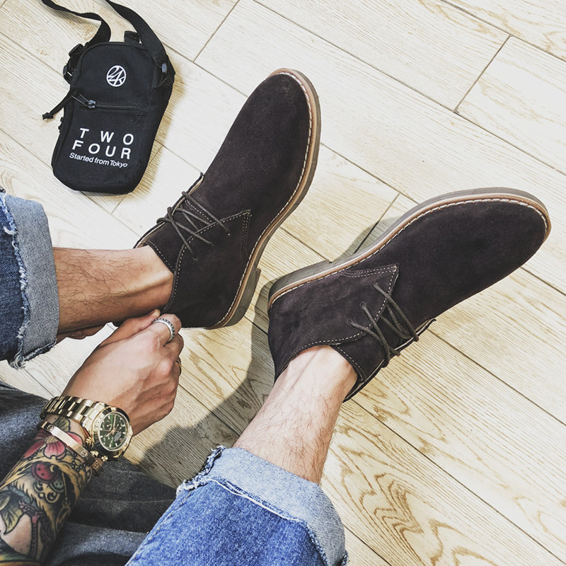 Genuine leather Inn Wind Martin boots Men's boots Short boots Tidal High Cylinder Shoes Retro 100 Hitch Mid-Cylinder Breathable Desert Boots Summer