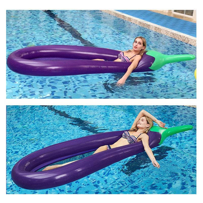 High-quality water inflatable oversized eggplant swimming ring floating row photo concave swimming large net pocket floating bed