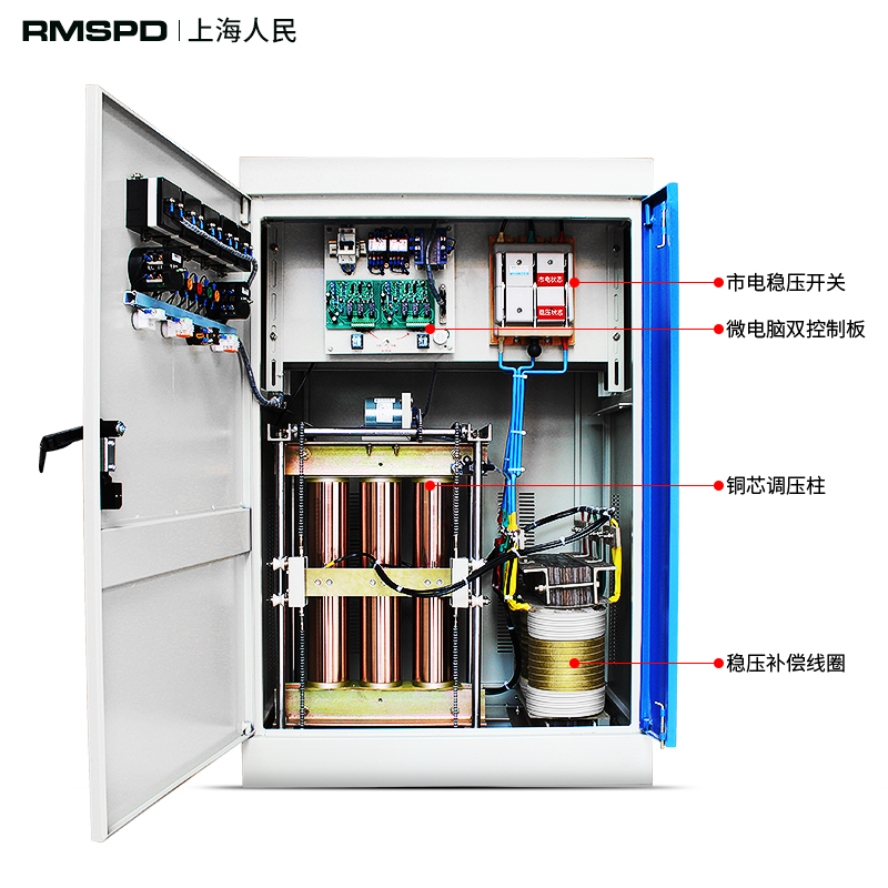 Shanghai People's three-phase high-power power compensation type fully automatic voltage regulator SBW-150KVA KW 380V