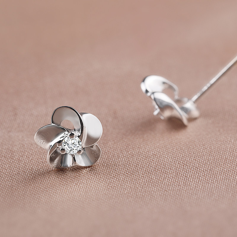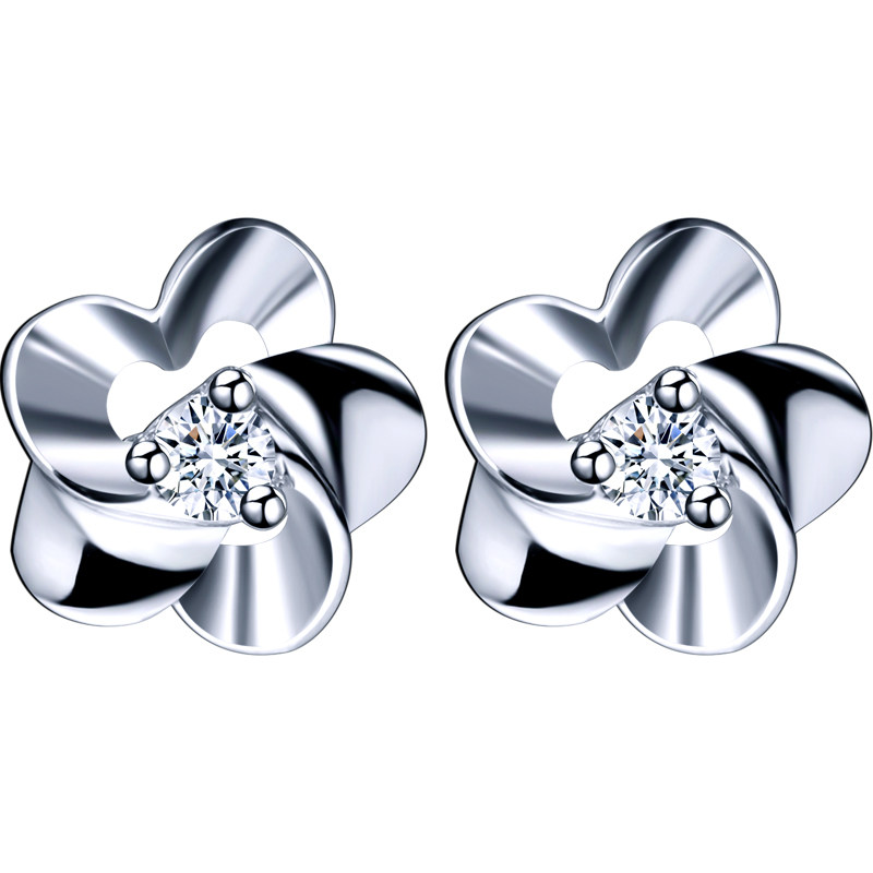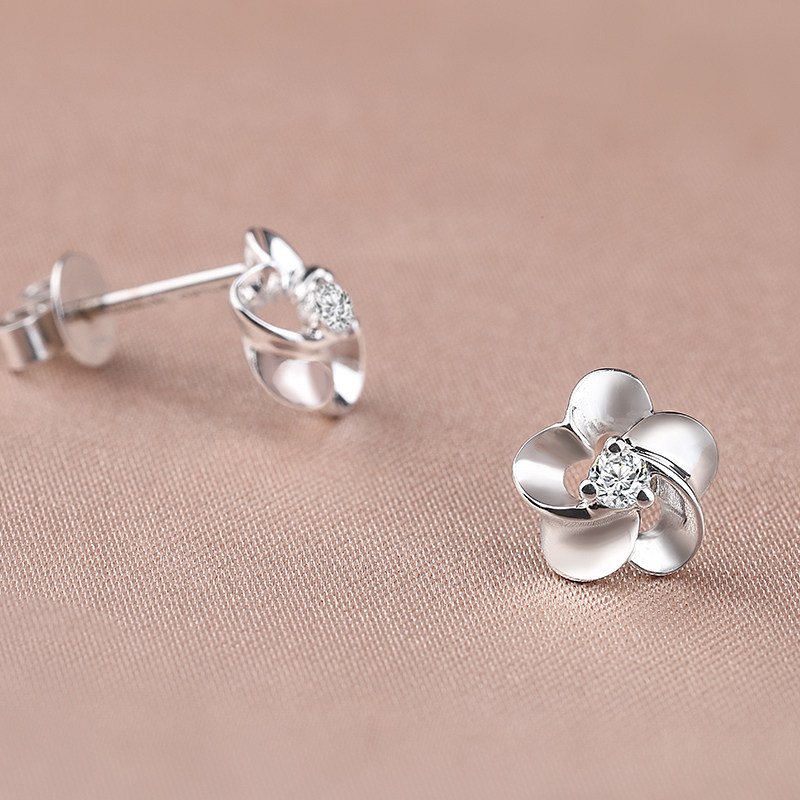 18K Gold Diamond Earrings Simple Lucky Flower Diamond Earrings for Girlfriend Gift Custom Platinum Color Gold Rose Gold