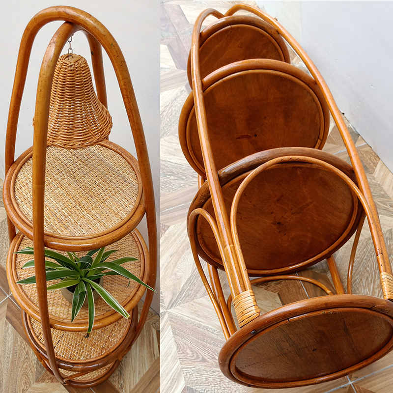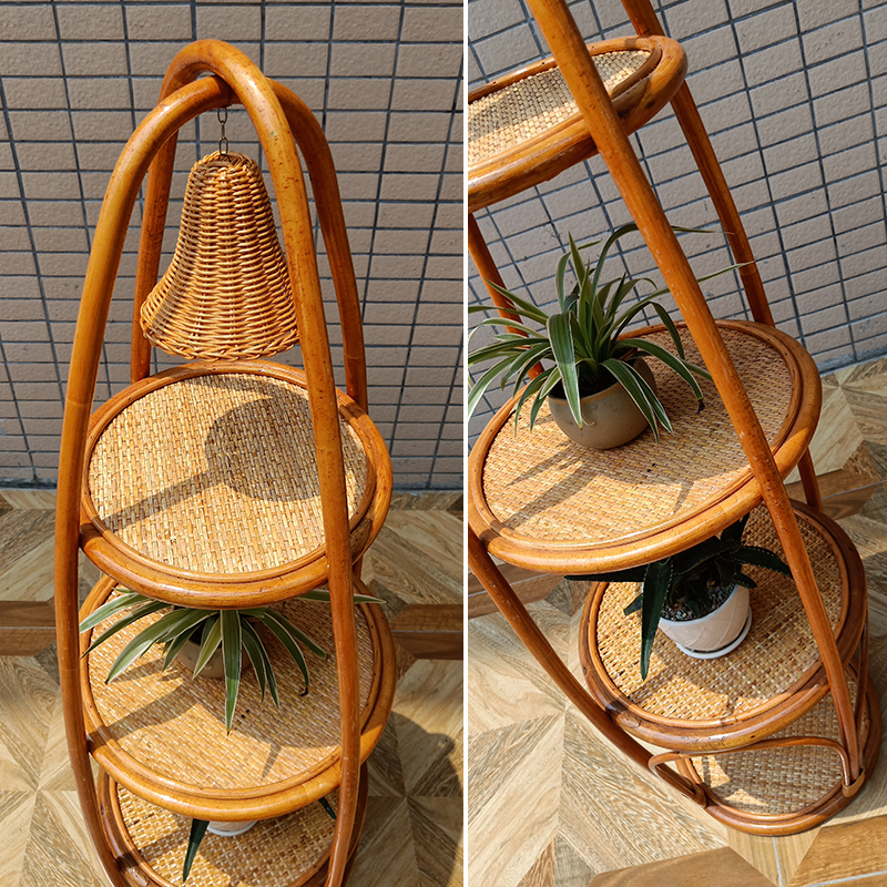 Four-layer rattan wood flower shelf floor placing flower pot shelf Creative fashion living room dining room Entrance Plant Large Basin Flower Shelf