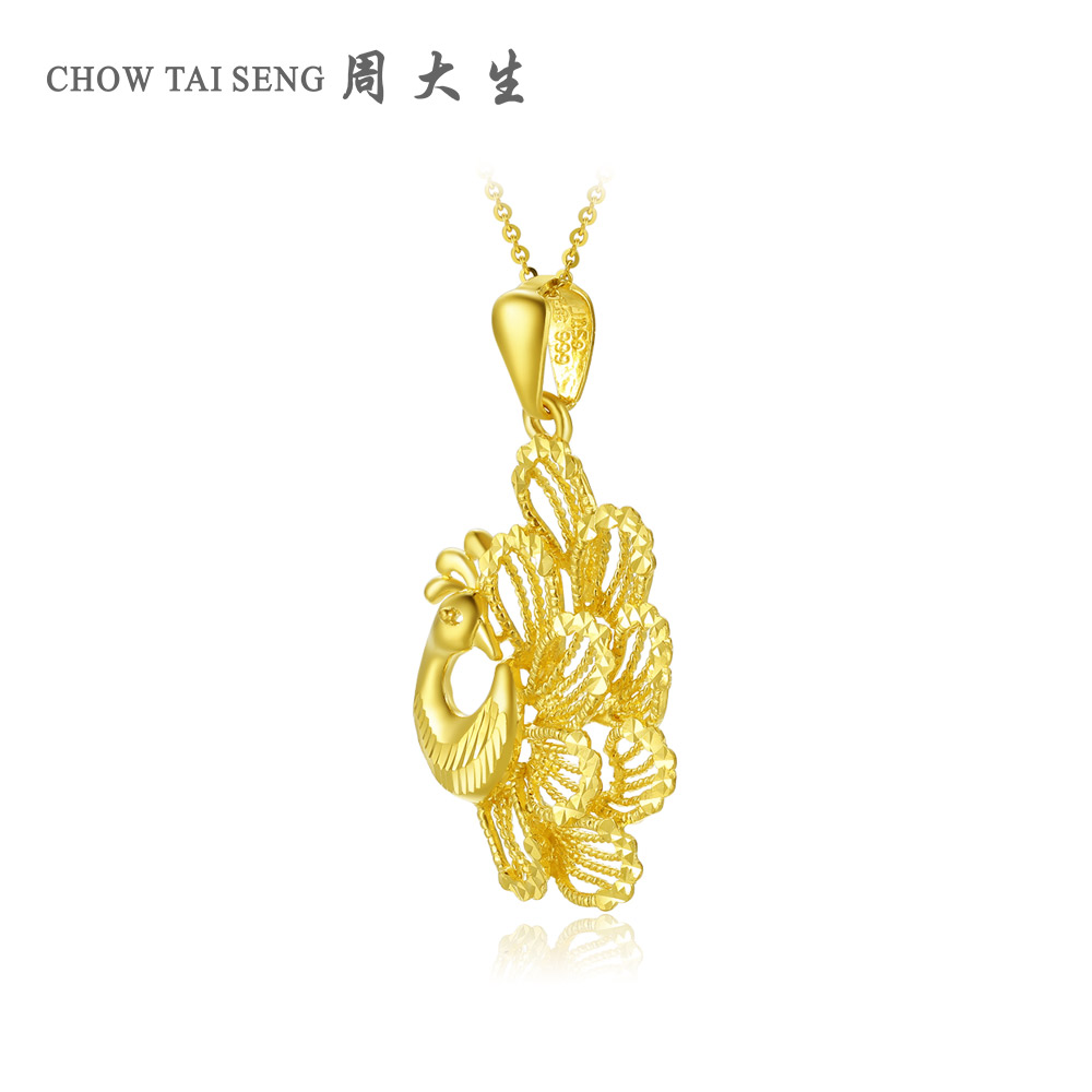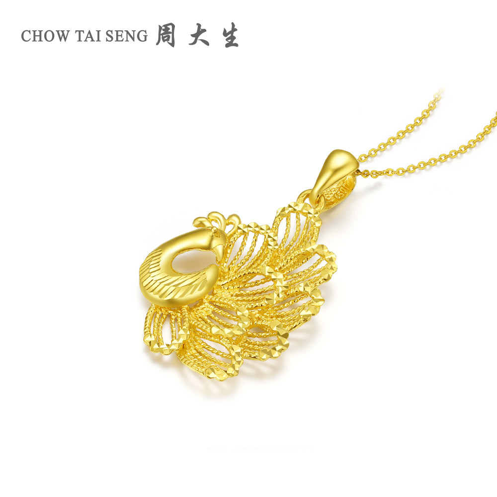 Zhou Dasheng Gold Phoenix Pendant Female 999 Pure Gold Necklace Pendant Marriage Three Gold Birthday Gift for Girlfriend