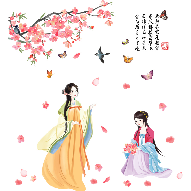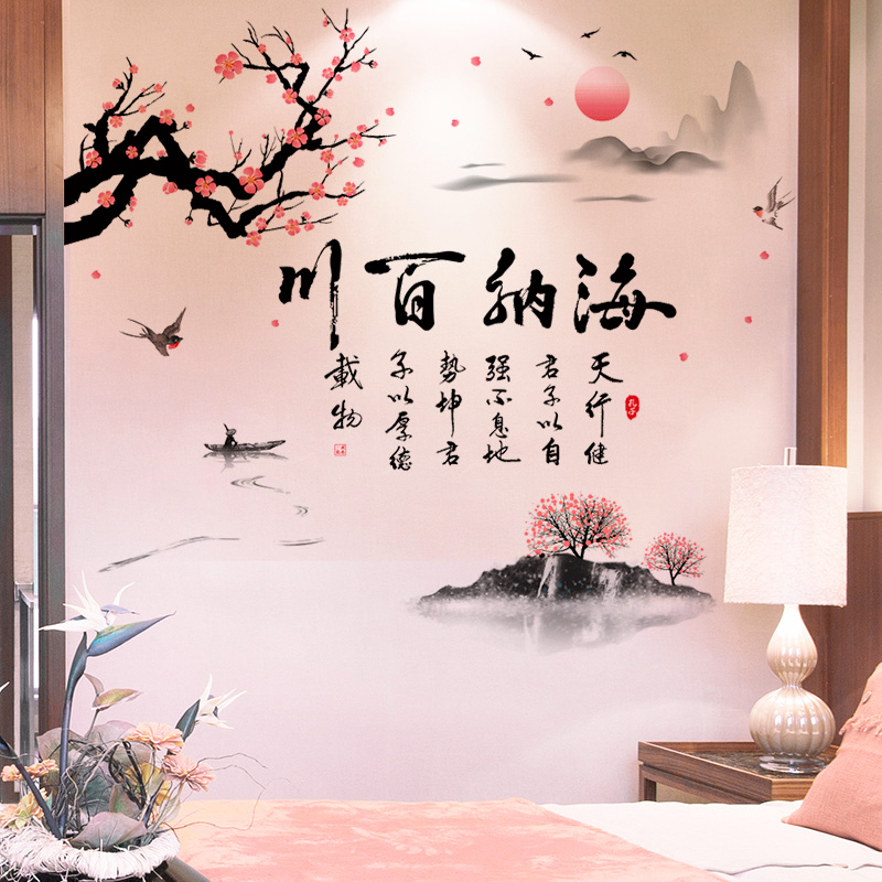 Chinese painting flowers blooming rich, ancient style and spring beauty, recalling Jiangnan ink painting, willingness, home and prosperity, inspirational quadruplet, blue landscape painting A version, fan-shaped bamboo frame, tranquility and far-reaching, the fragrance of plum blossoms