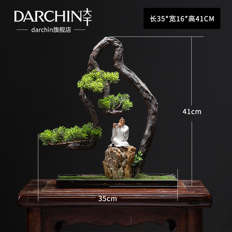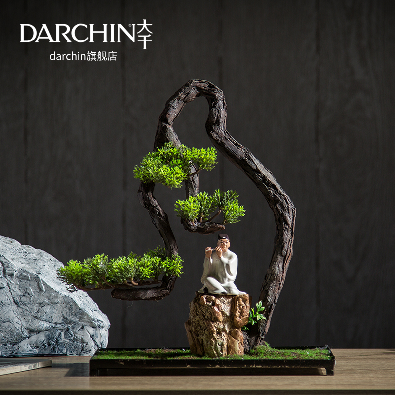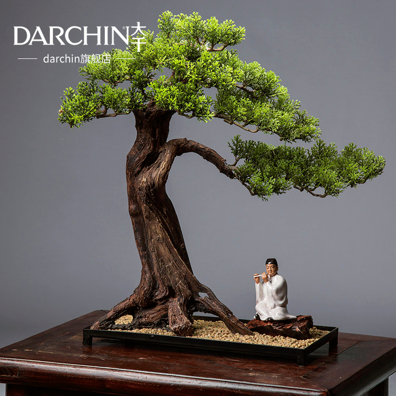New Chinese emulated plant bonsai Zen Pendulum Pieces Greet Guests Pine Office TV Cabinet Xuan Guan Soft Decoration Craft Gift Hem