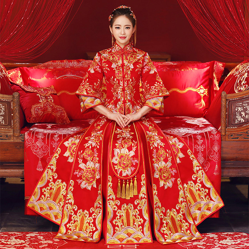 Xiuhe uniform bride 2021 new dress wedding Chinese wedding dress Dragon Phoenix coat wedding dress thin size show kimono