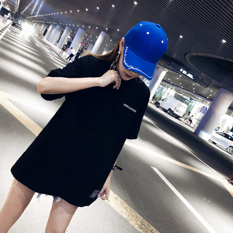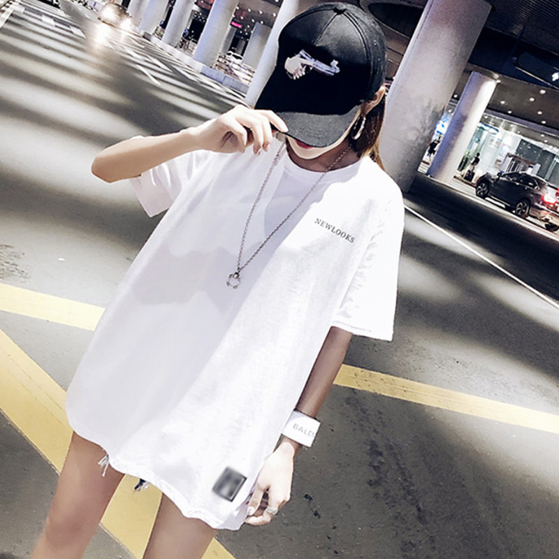 White Short Sleeve Tidal Fitting Summer Pure Cotton Medium Long Version Loose Foreign Pie Hip Half Sleeves Net Red Blouse hip Hins Chains Chains