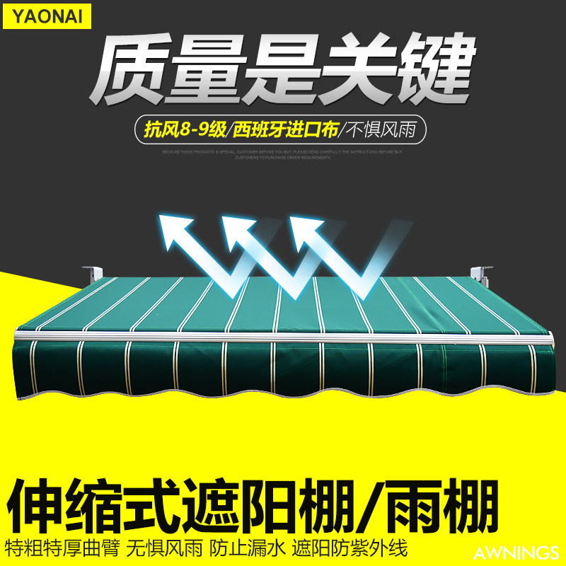 Outdoor awning Telescopic awning thickened and thickened aluminum alloy awning Hand-cranked rain folding parking shed
