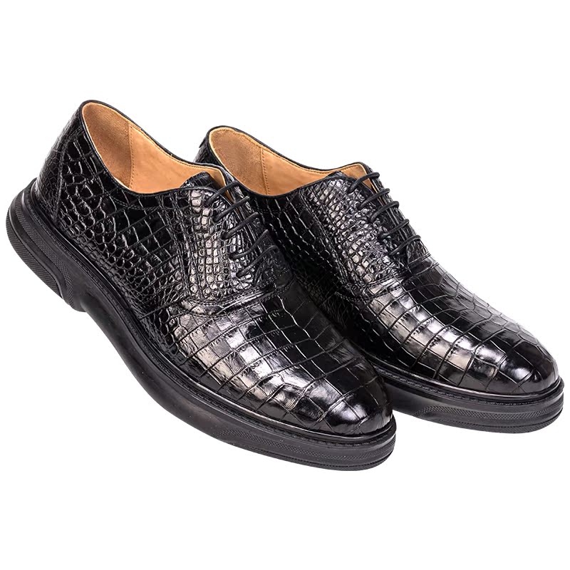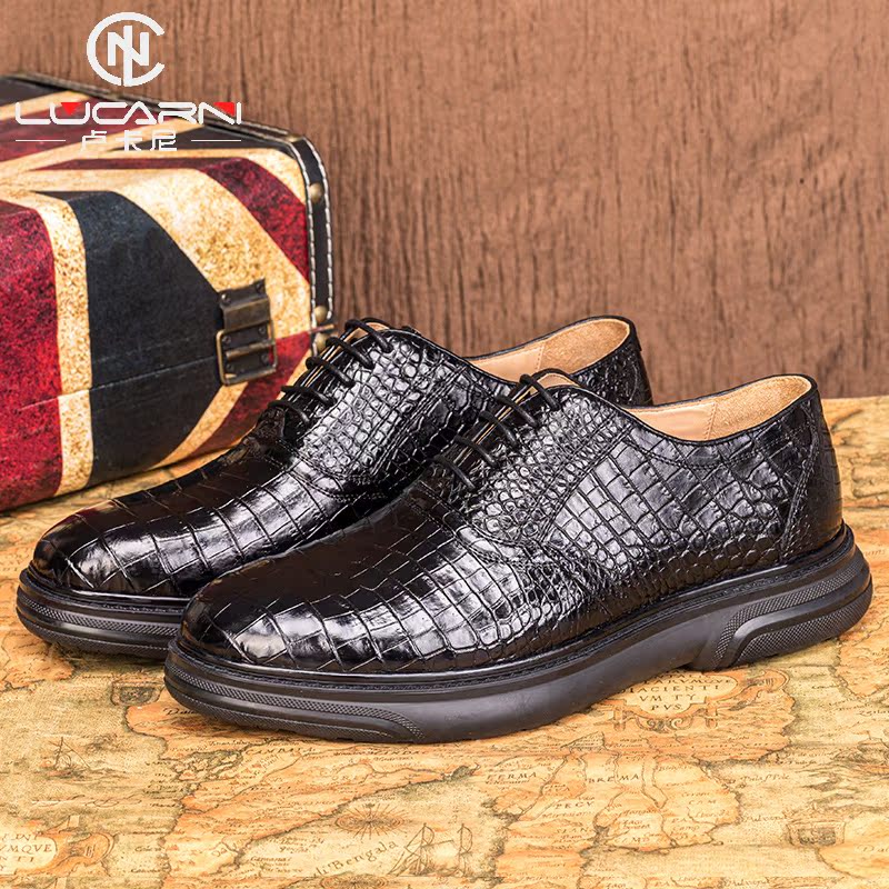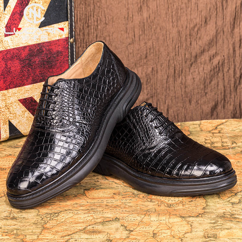 Crocodile Leather Men's Shoes Business Casual Leather Shoes Leather Bag Shoes Korean Lace Up Round Toe Comfortable Thick Sole Wear-resistant Flat Shoes