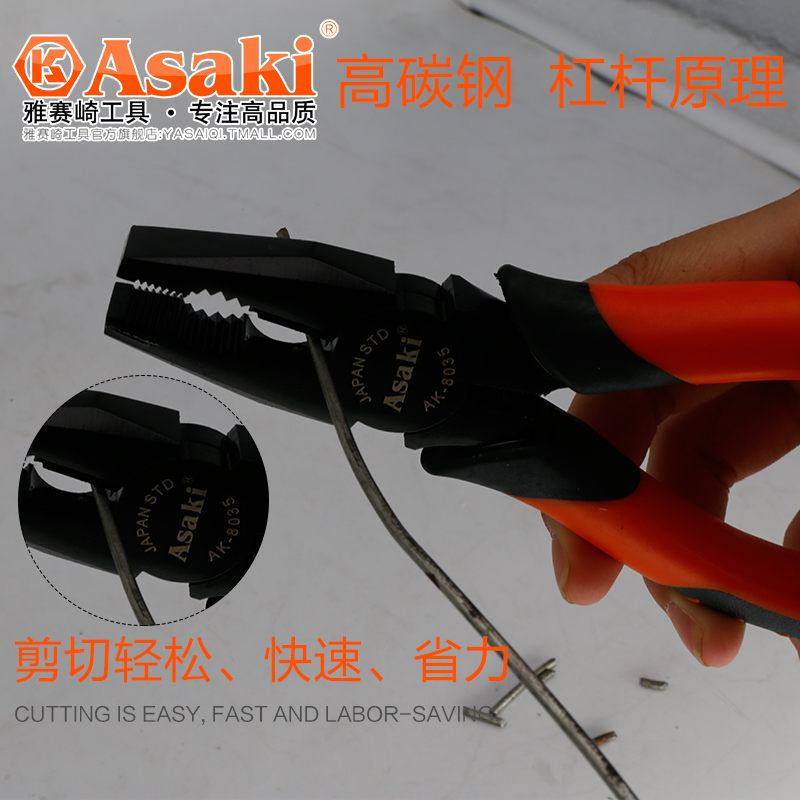 Yasaizaki American tiger leather handle sharp mouth pliers American tiger leather handle diagonal mouth pliers American tiger leather handle steel wire pliers
