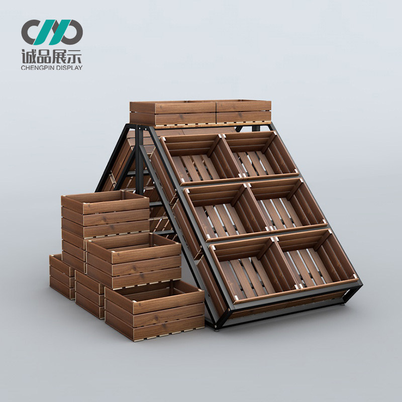 Supermarket Fruit Shelf Bevel shelf Vegetable Shelves Shelves Middle Island Cabinets Solid Wood Multipurpose Steel Wood Shelving